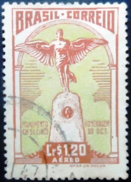 Selo postal Correio Aéreo CIRCULADO Emissão: 15.11.1947 Catálogo: RHM: A 62 / Mi: BR 722 Perfuração: 11 x 12 Impressão: Tipografia Valor facial: Cr$ 1,20