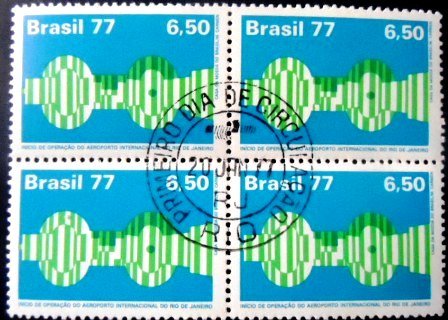 Quadra de selos postais Comemorativos obliterada com Carimbo de 1º Dia de Circulação do Rio de Janeiro – RJ, Não Circulada