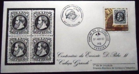 FDC Oficial NÃO CIRCULADO obliterado com Carimbo Comemorativo de João Pessoa- PB e de 1º Dia de Circulação da PARAÍBA