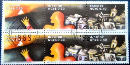 Valores faciais: 4 selos de NCz$ 0,30 e dois de NCz$ 0,40