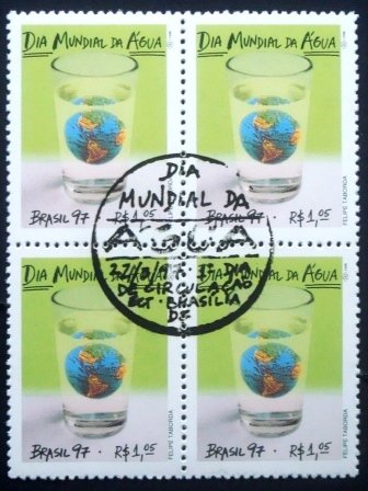 Quadra de selos postais Comemorativos com a goma perfeita, NÃO CIRCULADOS, obliterados com Carimbo Comemorativo e de 1º Dia de Circulação de BRASÍLIA / DF