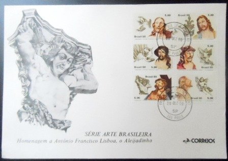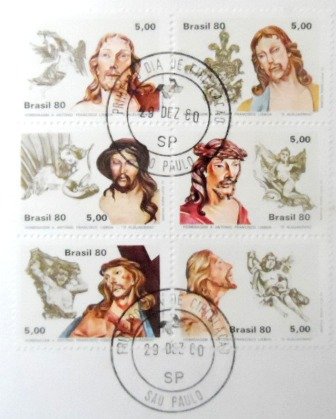 Cartela Filatélica composta por 6 selos postais Comemorativos obliterados com Carimbo de 1º Dia de Circulação de São Paulo – SP