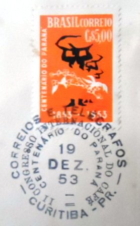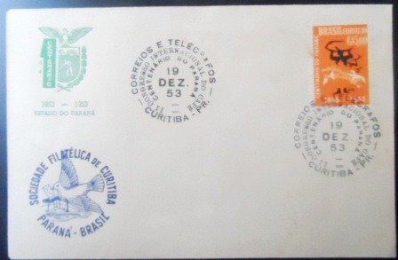 Envelope Comemorativo Selado e Não Circulado, obliterado com Carimbos Comemorativos de Curitiba-PR, e com logomarca do 1º Centenário do Paraná
