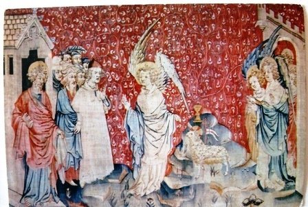 O apocalipse, feito em Paris por Nicolas Bataile de 1375 a 1380, dos desenhos animados de Hennequin de Bruges