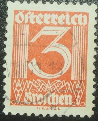 Mi:AT 449, Sn:AT 305, Yt:AT 333, Sg:AT 570, AFA:AT 363, ANK:AT 449Temas:NúmerosCunhada em:1925-06-01Prazo de validade:1935-12-31Tamanho:21 x 26 mmCores:VermelhoFormato:SeloEmissão:Definitivo/RegularPicote:Comb 12Impressão:TipografiaValor de Face:3 Áustria – Groschen