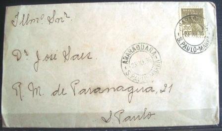 Envelope circulado em 1936 entre Araraquara/SP e São Paulo/SP