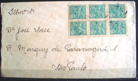 Envelope circulado em 23.03.1936 entre Araraquara/SP e São Paulo/SP