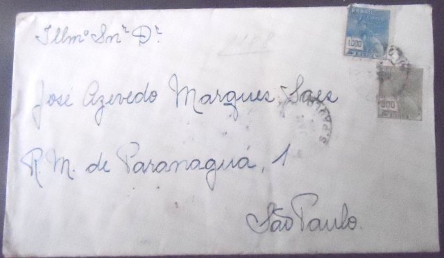 Envelope circulado em 10.01.1936 entre Araraquara – SP e São Paulo – SP
