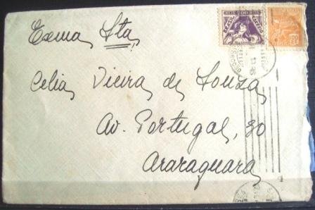 Envelope circulado em 07.06.1936 entre São Paulo/SP e Araraquara/SP