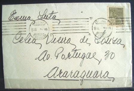 Envelope circulado em 19.08.1936 entre São Paulo – SP e Araraquara – SP