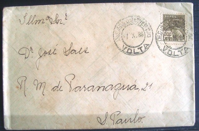 Envelope circulado em 07.10.1936 entre de Araraquara x São Paulo
