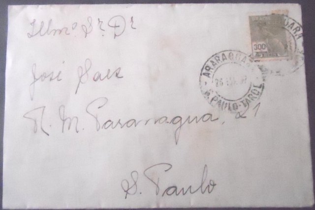 Envelope circulado em 26.03.1937 entre Araraquara – SP e São Paulo – SP