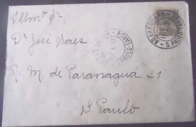 Envelope circulado em 17.01.1937 entre Araraquara – SP e São Paulo – SP