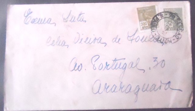 Envelope circulado em 13.03.1937 entre São Paulo – SP e Araraquara – SP