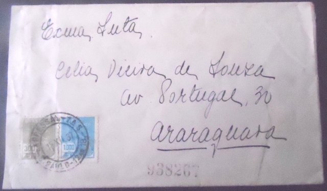 Envelope circulado em 16.12.1937 entre São Paulo – SP e Araraquara – SP