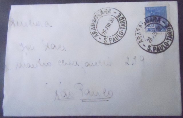 Envelope circulado em 26.08.1938 entre Araraquara – SP e São Paulo – SP