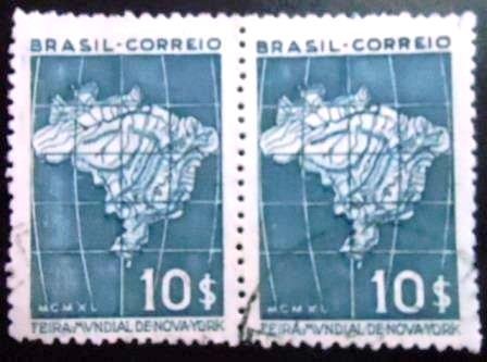 Par de selos postais Comemorativos CIRCULADO Emissão: 30.10.1940 Catálogo RHM C 155 / Mi BR 532 / Yt BR 376 Impressão: Recesso Valor facial: 10.000 Réis cada