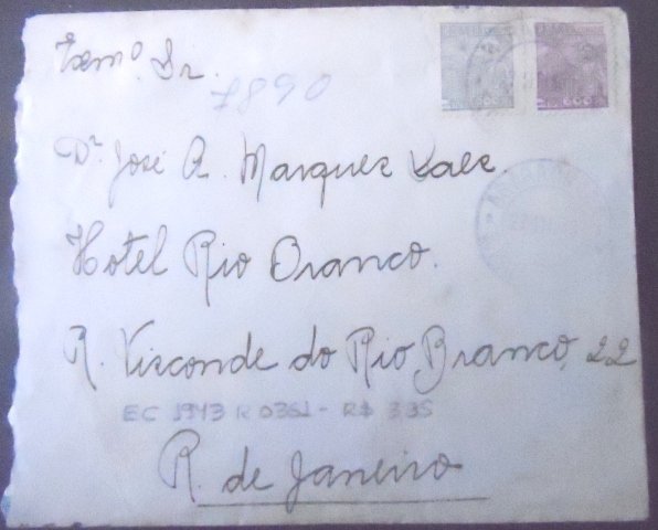 Envelope circulado em 27.03.1943 entre Araraquara – SP e Rio de Janeiro – RJ