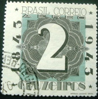 Selo postal Correio Aéreo CIRCULADO Emissão 07.08.1943 Catálogo RHM A 49 / Mi BR 640 Impressão Offset Valor facial Cr$ 2,00