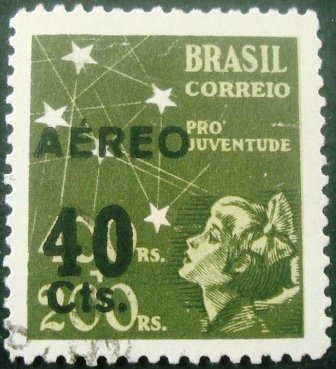 Selo postal Correio Aéreo CIRCULADO Emissão: 03.01.1944 Catálogo RHM A 53 Impressão: Offset Valor facial: Cr$ 40 cts / 400 Rs