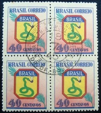 Quadra de selos postais Comemorativos, NÃO CIRCULADOS, com a goma perfeita, obliterados com Carimbo Comemorativo do Distrito Federal “FEB – A PÁTRIA ORGULHA-SE DE VÓS”