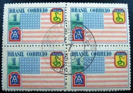 Quadra de selos postais Comemorativos, NÃO CIRCULADOS, obliterados com Carimbo Comemorativo do Distrito Federal “FEB – A PÁTRIA ORGULHA-SE DE VÓS”