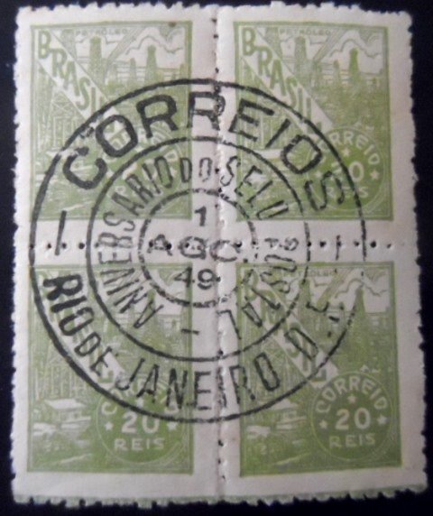 Quadra de selos postais Regulares com goma, Não Circulada, obliterada com Carimbo Comemorativo