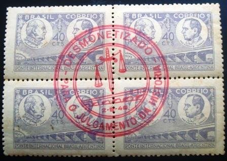 QUADRA de selos postais Comemorativos com goma, NÃO CIRCULADOS, obliterados em verde  ‘DESMONETIZADO – PARA O JULGAMENTO DA HISTÓRIA”