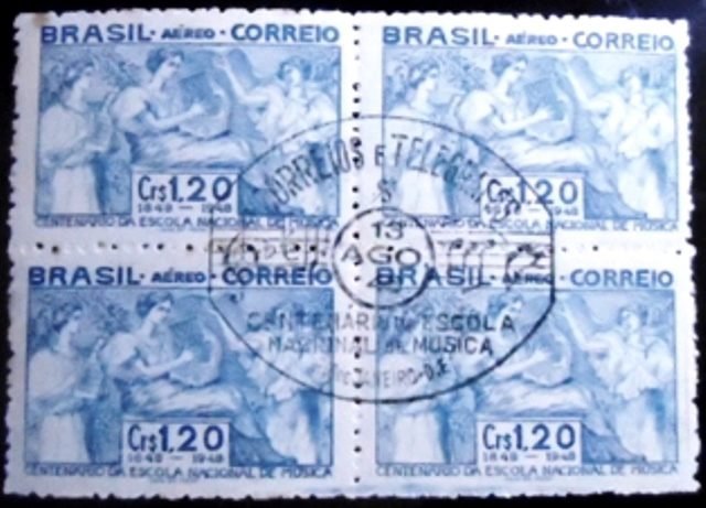 Quadra de selos postais Aéreos NÃO CIRCULADA, obliterada com Carimbo Comemorativo do Rio de Janeiro -DF