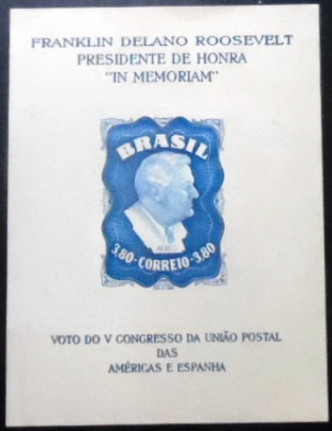 Bloco postal Comemorativo MINT Emissão: 20.05.1949 Catálogo: RHM B 12 / Mi BR Bl 10 / Yt BR BF 11 Medidas: 85 x 110mm Arte: Walter Borges Impressão: Recesso Tiragem: 30.000 Valor facial: Cr$ 3,80