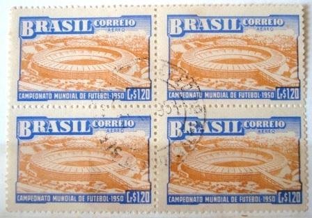 Quadra de selos postais AÉREOS, CIRCULADOS