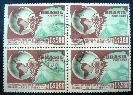 Quadra de selos postais Comemorativos CIRCULADOS