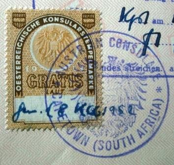 Selo consular da Áustria afixado em página de passaporte