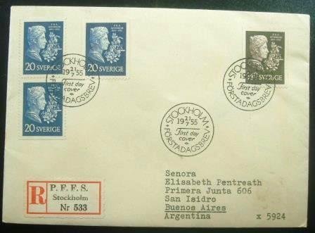 Envelope de 1º Dia de Circulação contendo QUATRO selos postais obliterados com Carimbo de 1º Dia de Estocolmo