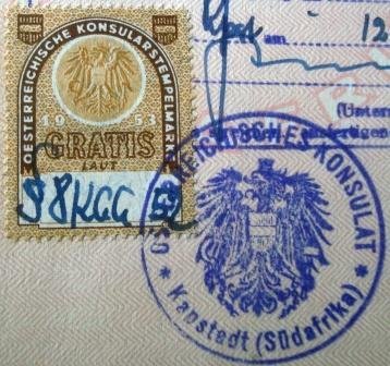 Selo consular da Áustria afixado em página de passaporte