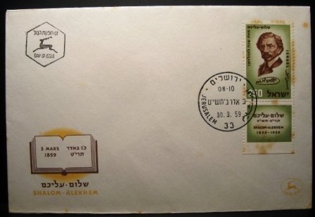 ENVELOPE de 1º DIA DE CIRCULAÇÃO, não circulao, em ótimo estado de conservação, emitido em homenagem à “SHALOM ALEICHEM (1859 – 1916)”
