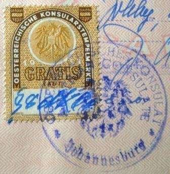 Selo consular da Áustria afixado em página de passaporte