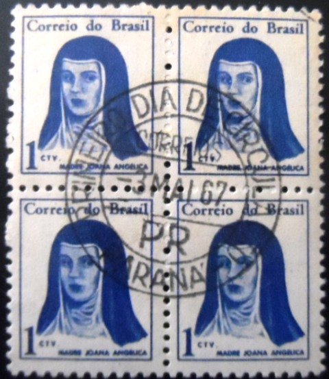 Quadra de selos postais Regulares Não Circulada, obliterada com carimbo de 1º Dia de Circulação do Paraná