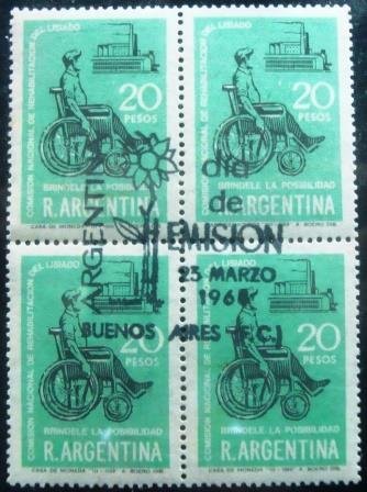 Quadra de selos postais Comemorativos, com a goma perfeita, obliterados com carimbo Comemorativo de Buenos