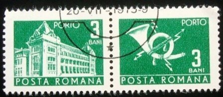 Se-tenant Porte Devido, obliterado, com goma, NÃO CIRCULADO