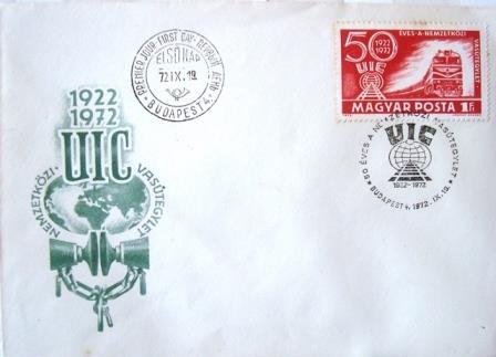 O envelope apresenta selo da série “50 Years International Union of Railways“, obliterado com Carimbo Comemorativo, e apresenta também Carimbo de 1º Dia de Circulação