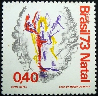 Quadra de selos do Brasil de 1977 Anjo e Maria