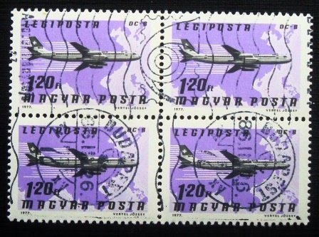 Quadra de selos postais Correio Aéreo CIRCULADOS