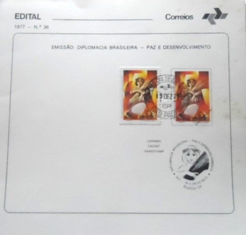 Edital de Lançamento SELADO obliterado com CPD de SÃO PAULO/SP e CBC de BRASÍLIA/DF