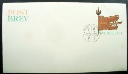 Inteiro postal (Post Brev) PRÉ-PAGO (impresso) obliterado com Carimbo de 1º Dia de Circulação de Estocolmo