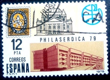 NOTA: Philaserdica ‘ 79, International Philatelic Exhibition, Sófia, Bulgária, maio 18-27: Bulgária Stamp no. 1, Sofia Opera House, e Exhibition Hall