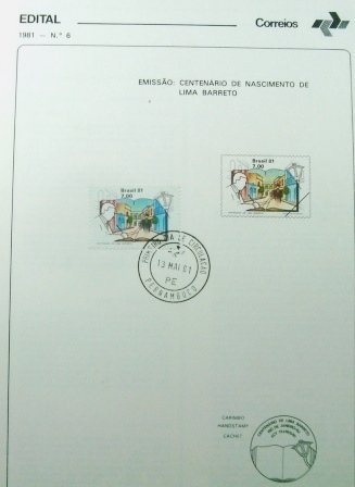 Edital de lançamento SELADO obliterado com Carimbo de 1º Dia de Circulação de PERNAMBUCO e Carimbo Comemorativo do RIO DE JANEIRO / RJ