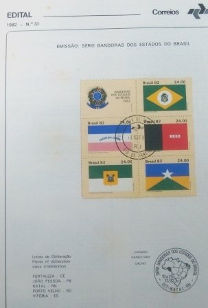 Edital de lançamento SELADO contendo 5 selos e uma vinheta, obliterados com Carimbo de 1º Dia do Rio de Janeiro / RJ