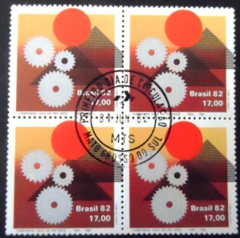 Quadra de selos postais NÃO CIRCULADA, com goma, obliterada com Carimbo 1º Dia de Circulação do Mato Grosso do Sul