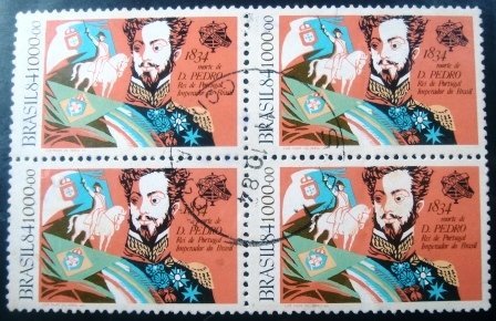 QUADRA de selos postais Comemorativos, CIRCULADOS